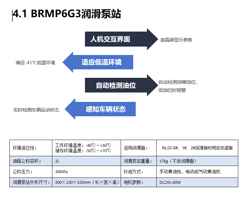 BRMP6G3润滑泵站能够泵送NLGI—0#~2#锂基润滑脂,低温环境下采用相应低温润滑脂。广泛应用于重卡、特种车辆底盘、商用车、锻压、冶金、矿山机械、风电、船舶等领域。
